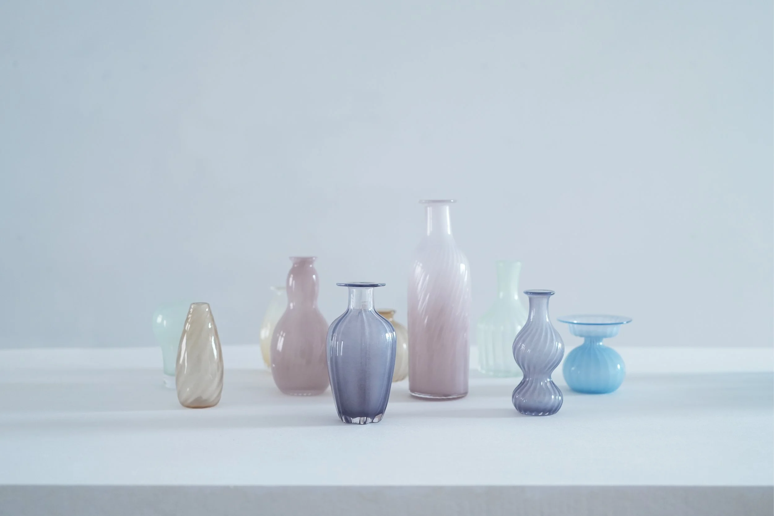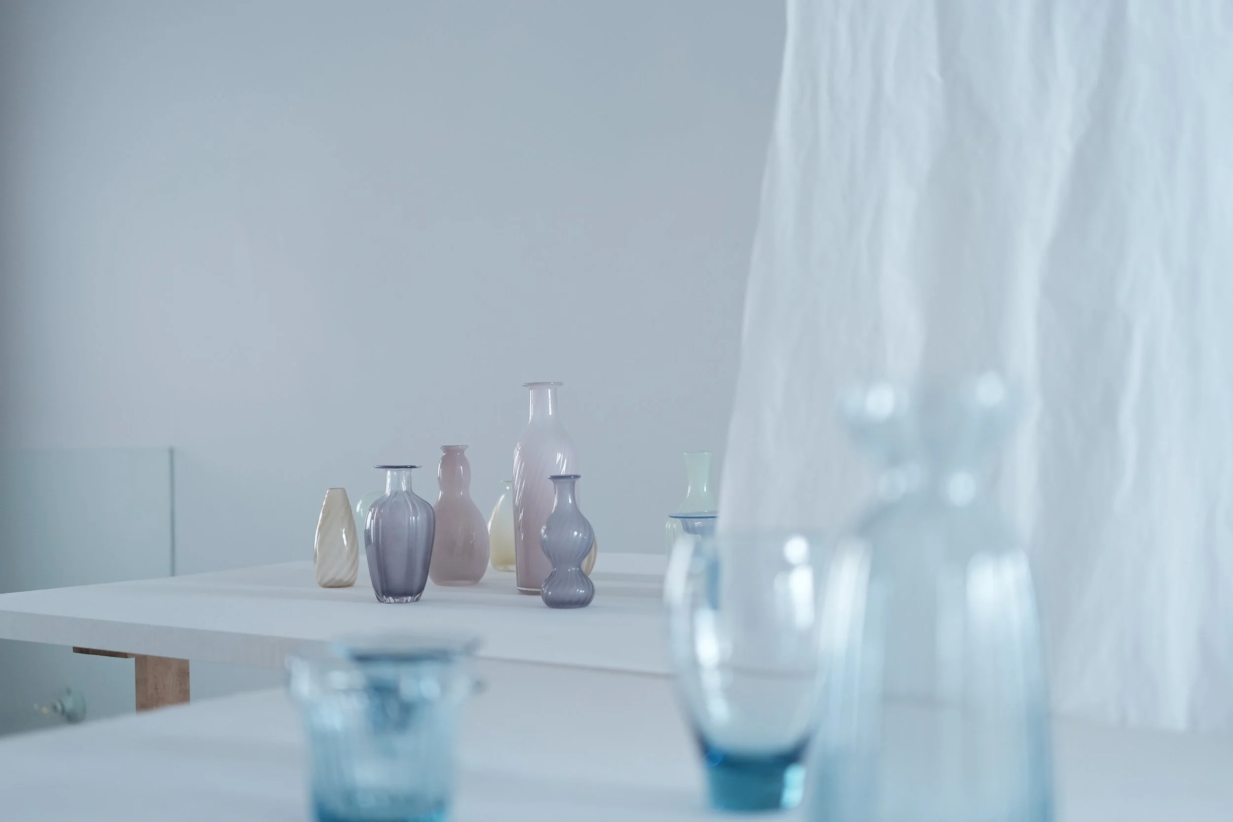 帶來另一種方向的柔和,褪去玻璃原本的清涼印象,帶著低飽和的顏色以及像霧氣般的色調,讓人聯想到秋日午後的餐桌,有陽光,有熱茶,也有恰到好處的溫柔。